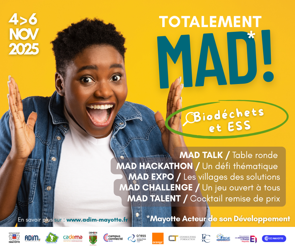 L’ADIM, en collaboration avec le Conseil départemental, le SIDEVAM et la CADEMA, prépare la 6ᵉ édition de son événement : Mayotte Acteur de son Développement (MAD) ! Le thème de 2025 sera :
